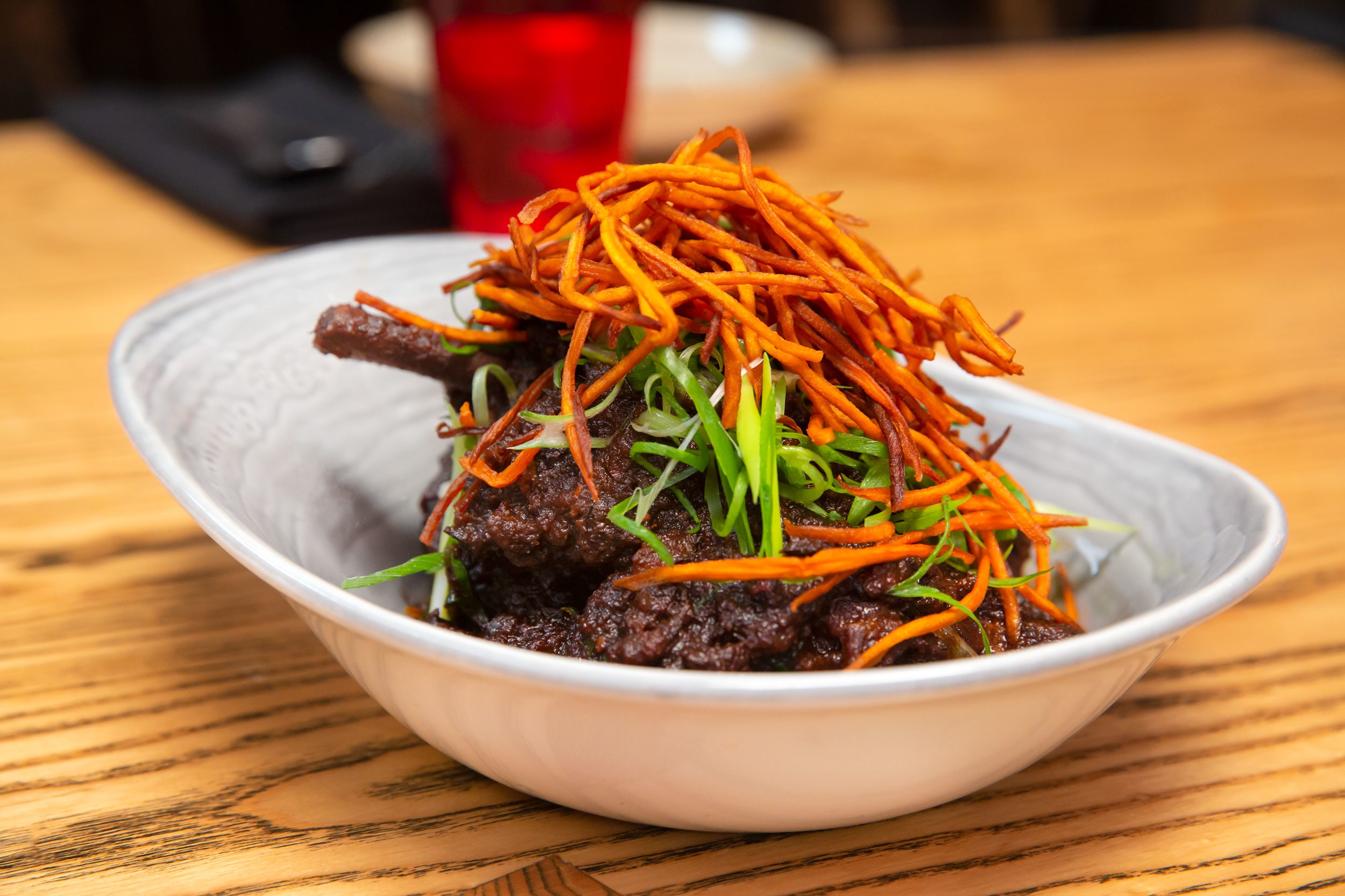Steamed bao, salt roasted pork, hoisin, pickle, mustard – $6 Coconut chicken steamed bao – $5 Vermicelli spring rolls (seafood or vegetable options) – $6 Kimchi corn fritters, soy vinegar sauce – $10 Sambal chicken wings – $10 Kung Pao cauliflower, Sichuan pepper, green onion, cashews – $20 Green Vegetable stir-fry – $18 Shaken beef hor fun stir fried noodles – $20 Central Thai chicken or vegetable curry, holy basil, peanut – $20 Spicy Korean BBQ beef ribs – $22 Pork belly, hot mint slaw, black vinegar, chilli caramel – $28 Korean chicken burger with chips $15 Fried rice (chicken or vegetable option) – $10 Steamed jasmine rice – $3.50 Side paratha – $6
